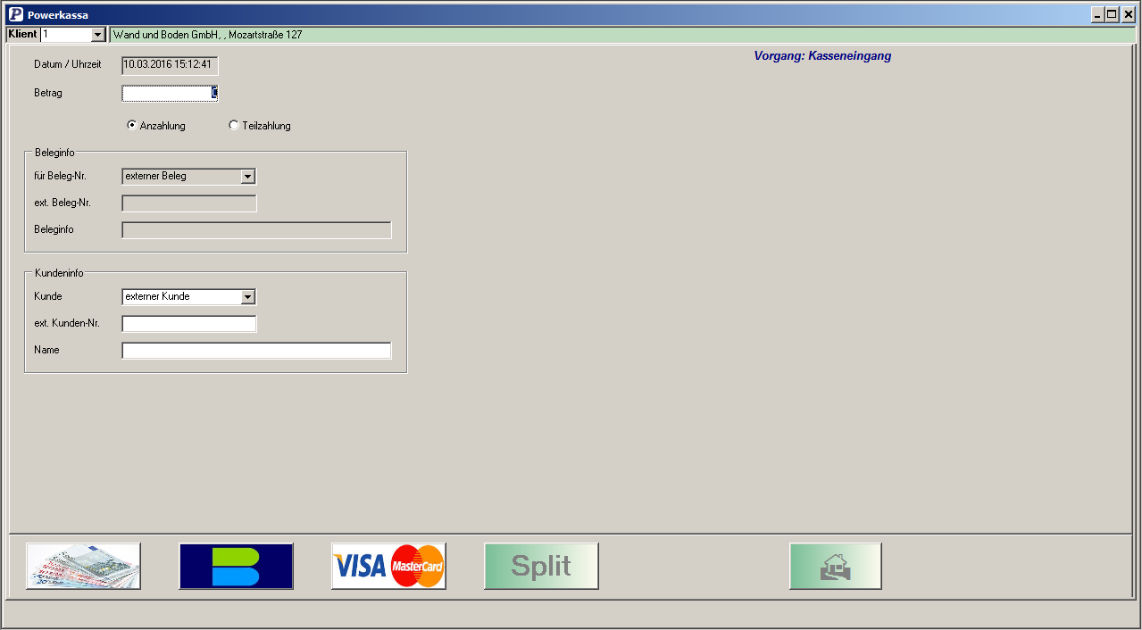 Nur wenige Eingaben sind notwendig, um einen Kassaeingang (Anzahlung oder Teilzahlung) zu erfassen.