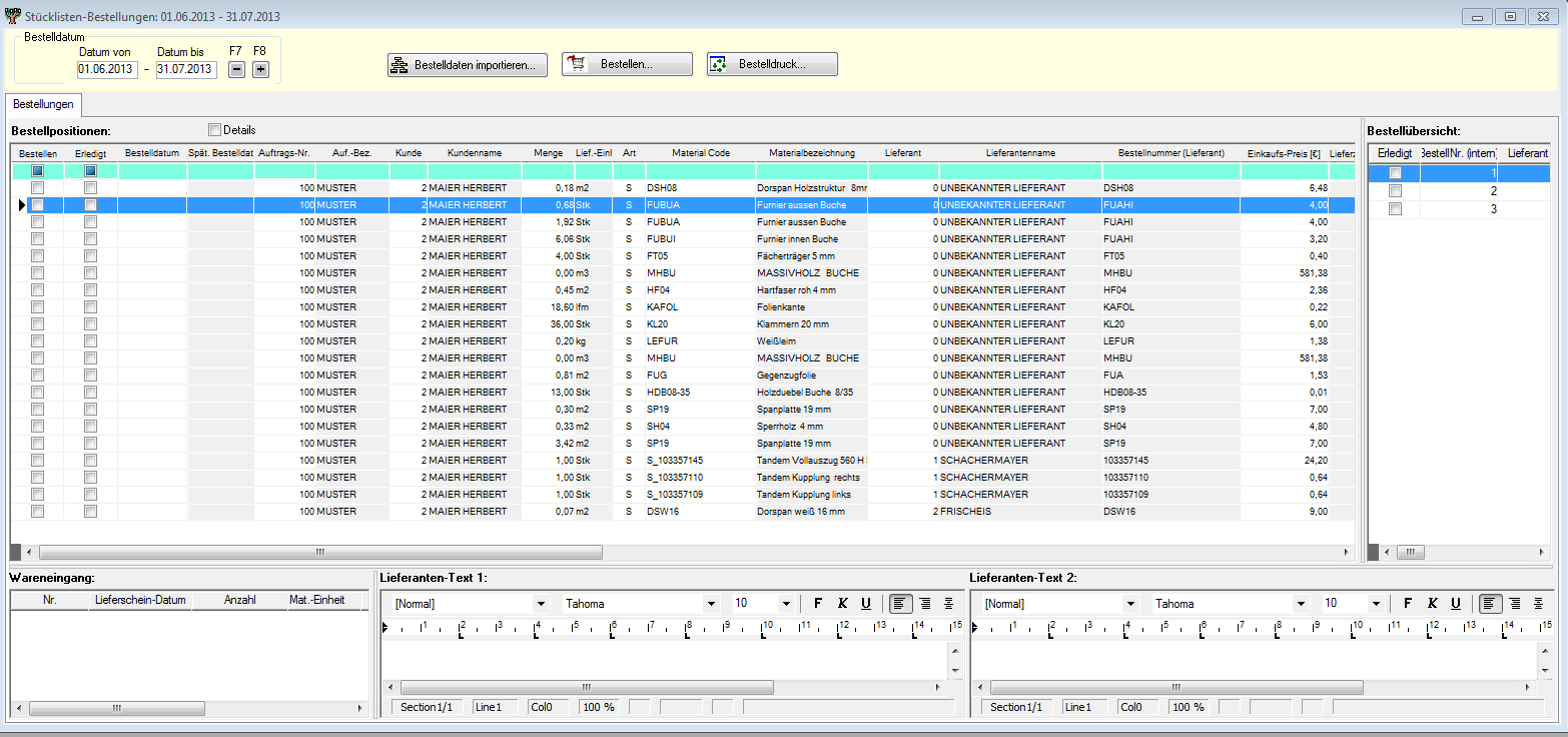 - Filterung aller Bestellungen mit Liefertermin, Überschreitung Liefertermin und Preiskontrolle