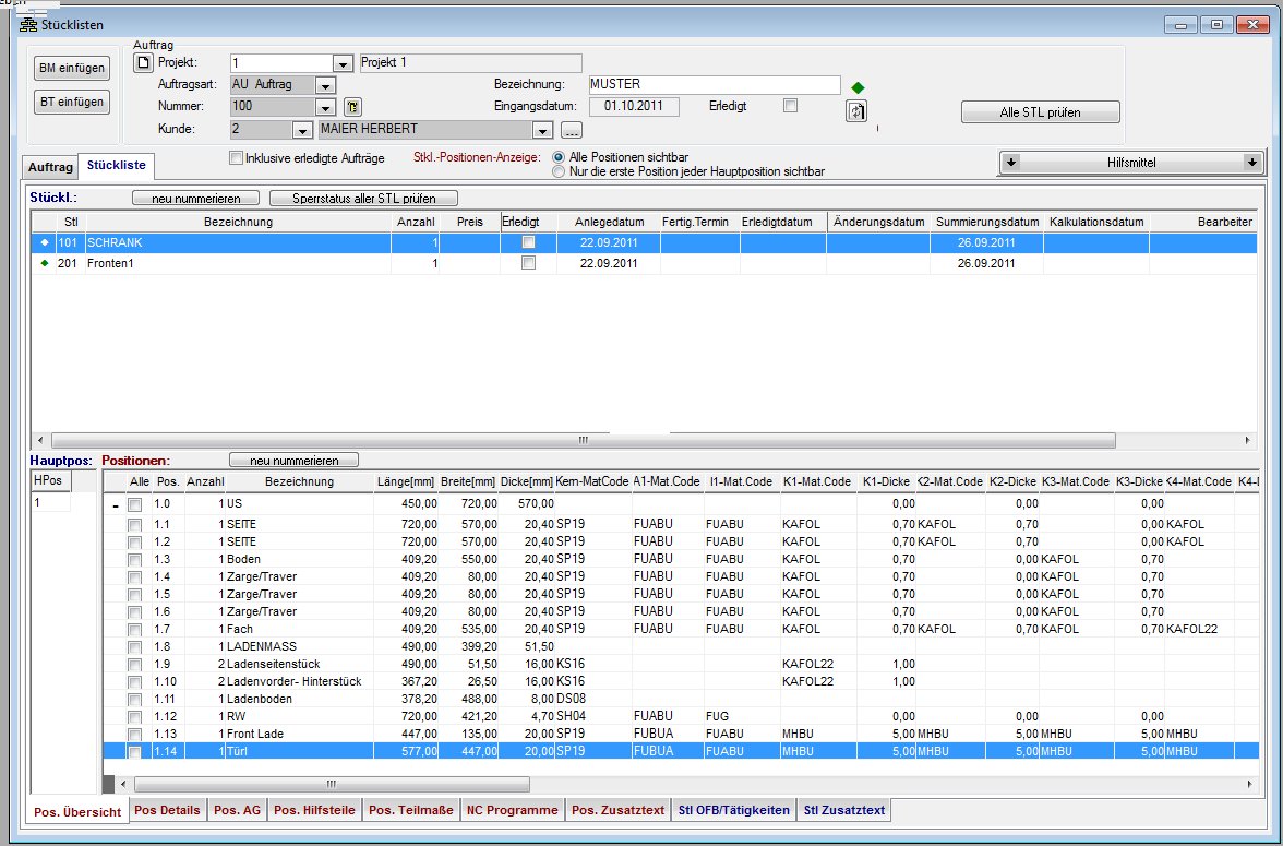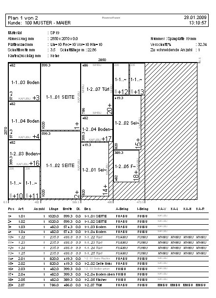 Auswertungen wie Stücklisten Zuschnittlisten Furnierlisten Beschlägelisten