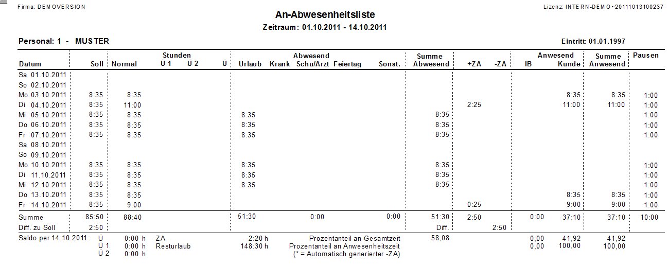 Auswertungen wie AN- Abwesenheitsliste Lohn Monatsauswertung Urlaubslisten Produktivität Kostenstellenstatistik, Nachkalkulation