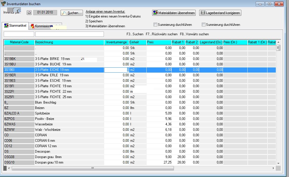 Freie Eingabe oder Änderungen von Positionen über Artikelstamm oder Kommissionswaren