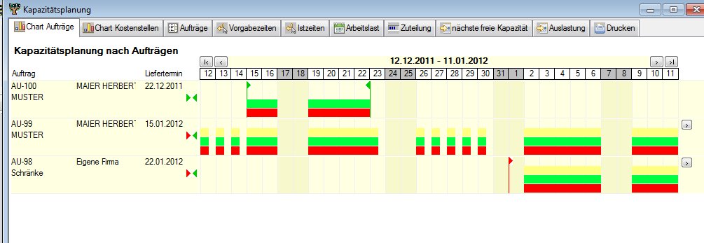 Grafisch Darstellung der Betrieblichen Auslastung über Auftrag und Kostenstelle